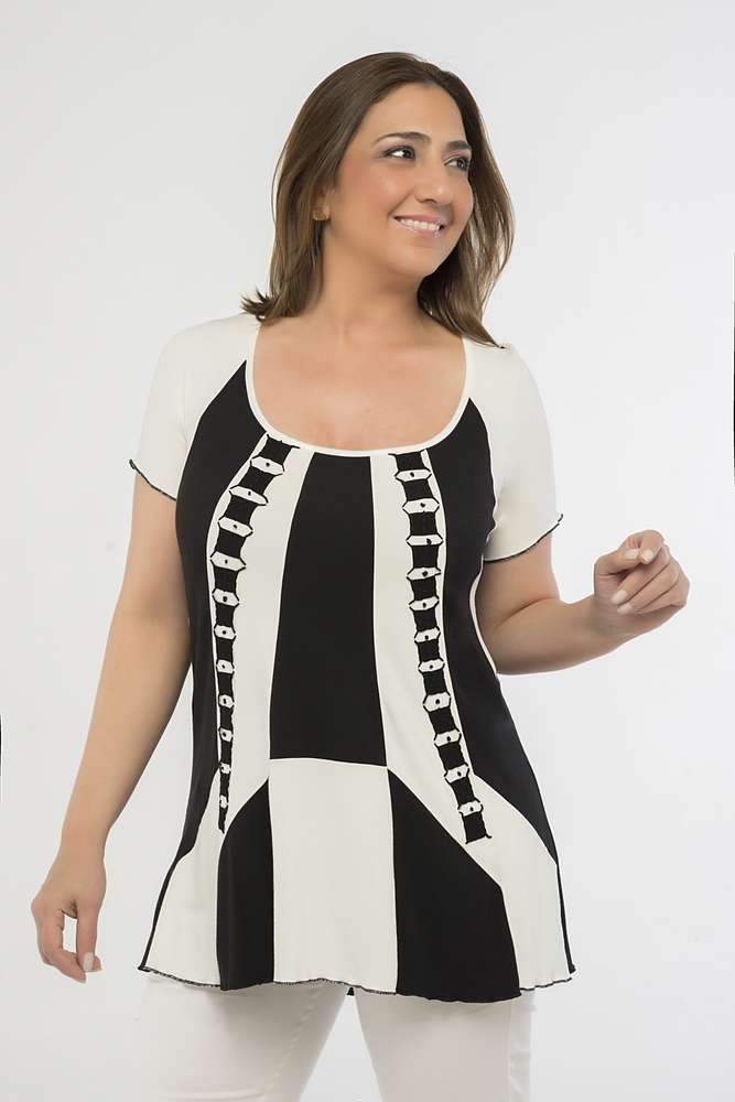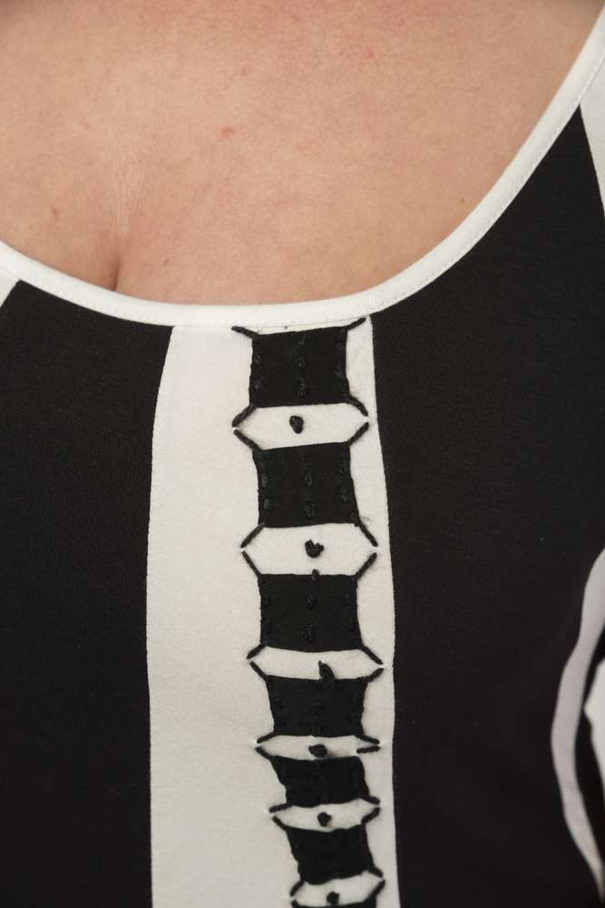 Remera realizada en gajos a contramano con bordado y aplicado a mano.